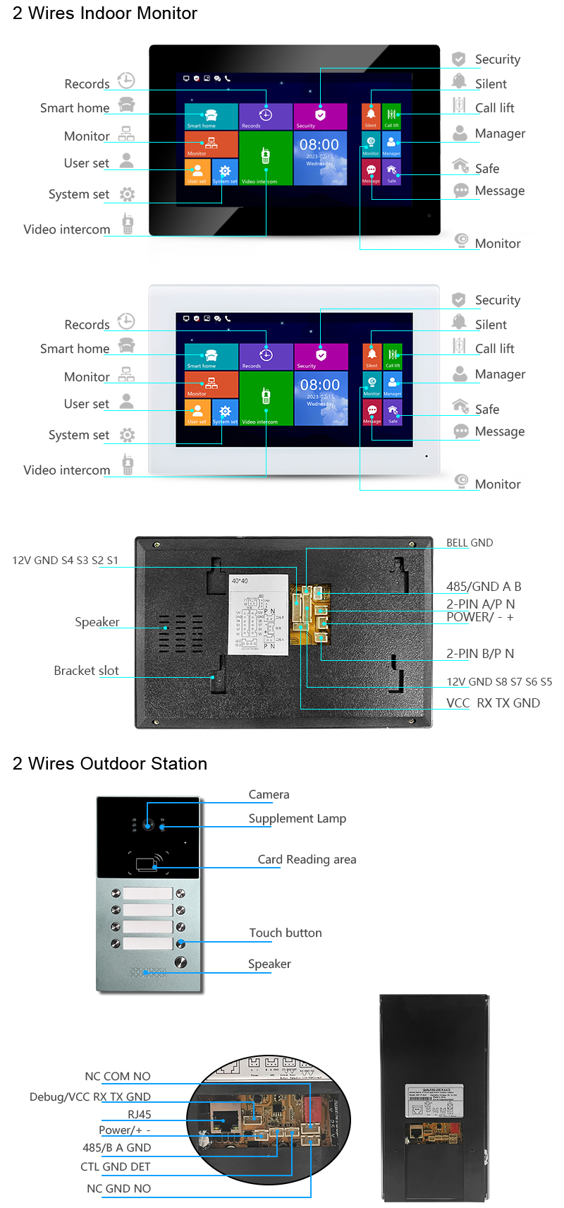 ہوم سیکیورٹی 7 انچ ایل سی ڈی ڈسپلے مانیٹر ہینڈ فری موشن ڈیٹیکٹر ویڈیو ڈور انٹرکام سسٹم ملٹی اپارٹمنٹس کے لیے