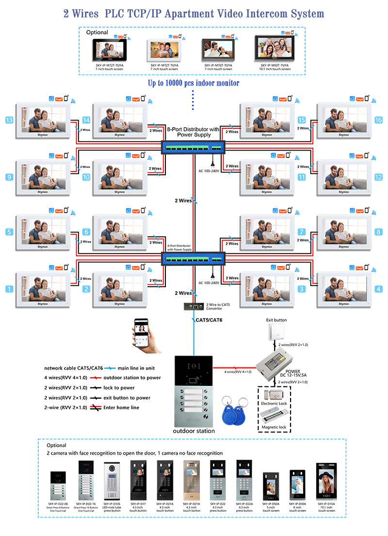 2 تاریں ip سسٹم-اپارٹمنٹ 1 سے 1 ڈایاگرام